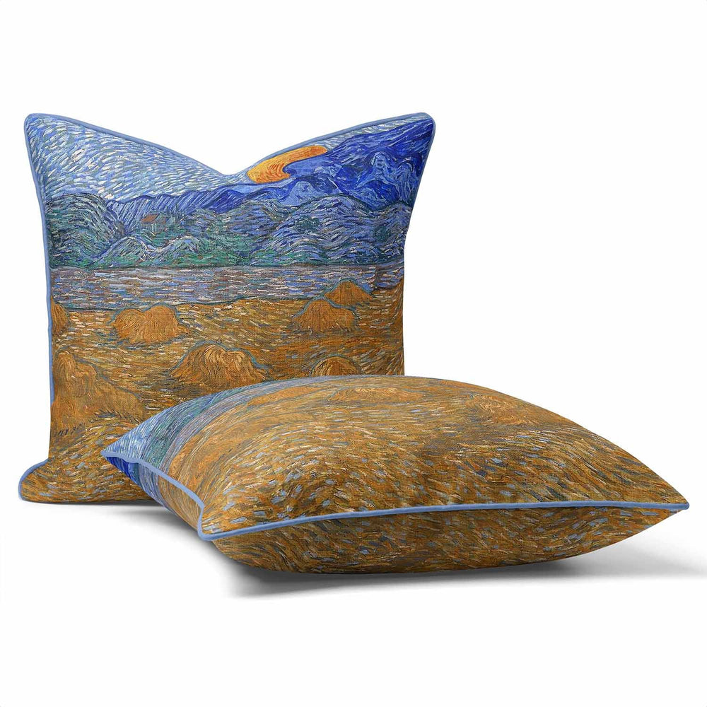 Landscape with Wheat Sheaves and Rising Moon (1889) by Vincent Van Gogh - Cushion