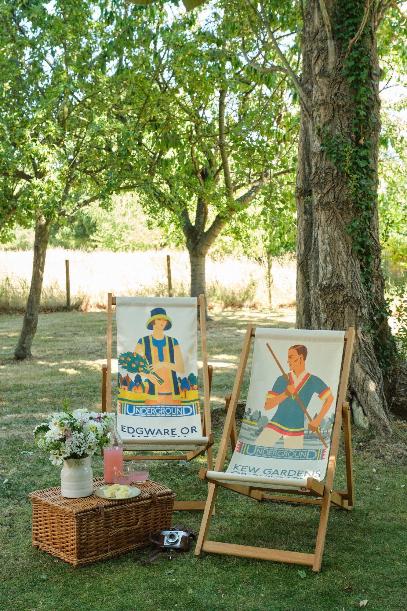 The Kate M Burrell collection consists of seven deckchair designs from the TfL's London Transport Museum poster archive.