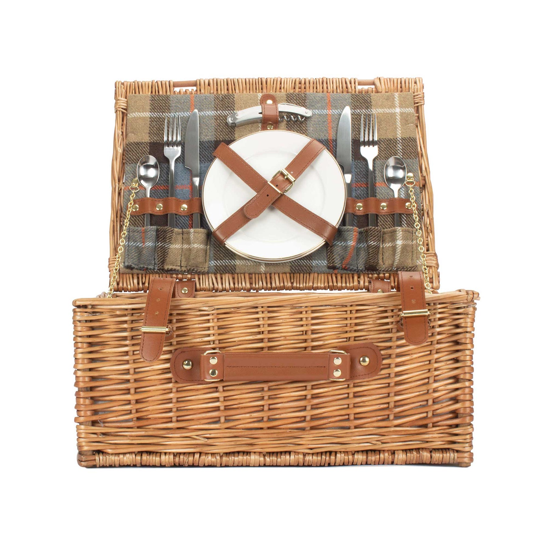 Elevate your next picnic with this charming 2-person fitted hamper, beautifully woven from natural light-steamed willow and finished with tan faux-leather straps. It has that classic countryside feel — simple, well-made and effortlessly practical — making it perfect for park afternoons, coastal walks or a quiet spot in the woods.