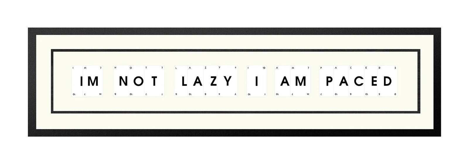 Discover a distinctive collection of wall art created using genuine playing cards. Each frame is handmade to order in Southampton, with individual cards carefully arranged to spell meaningful words, names, phrases or quotations. The result is a striking and unusual piece of artwork with real texture and character.