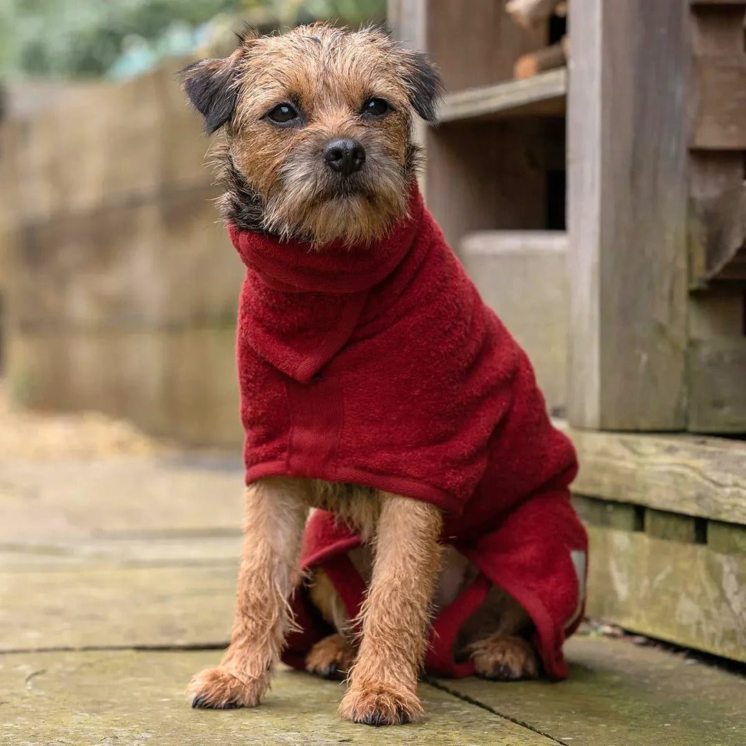 Country Dog Drying Coat in Burgundy Red by Ruff and Tumble