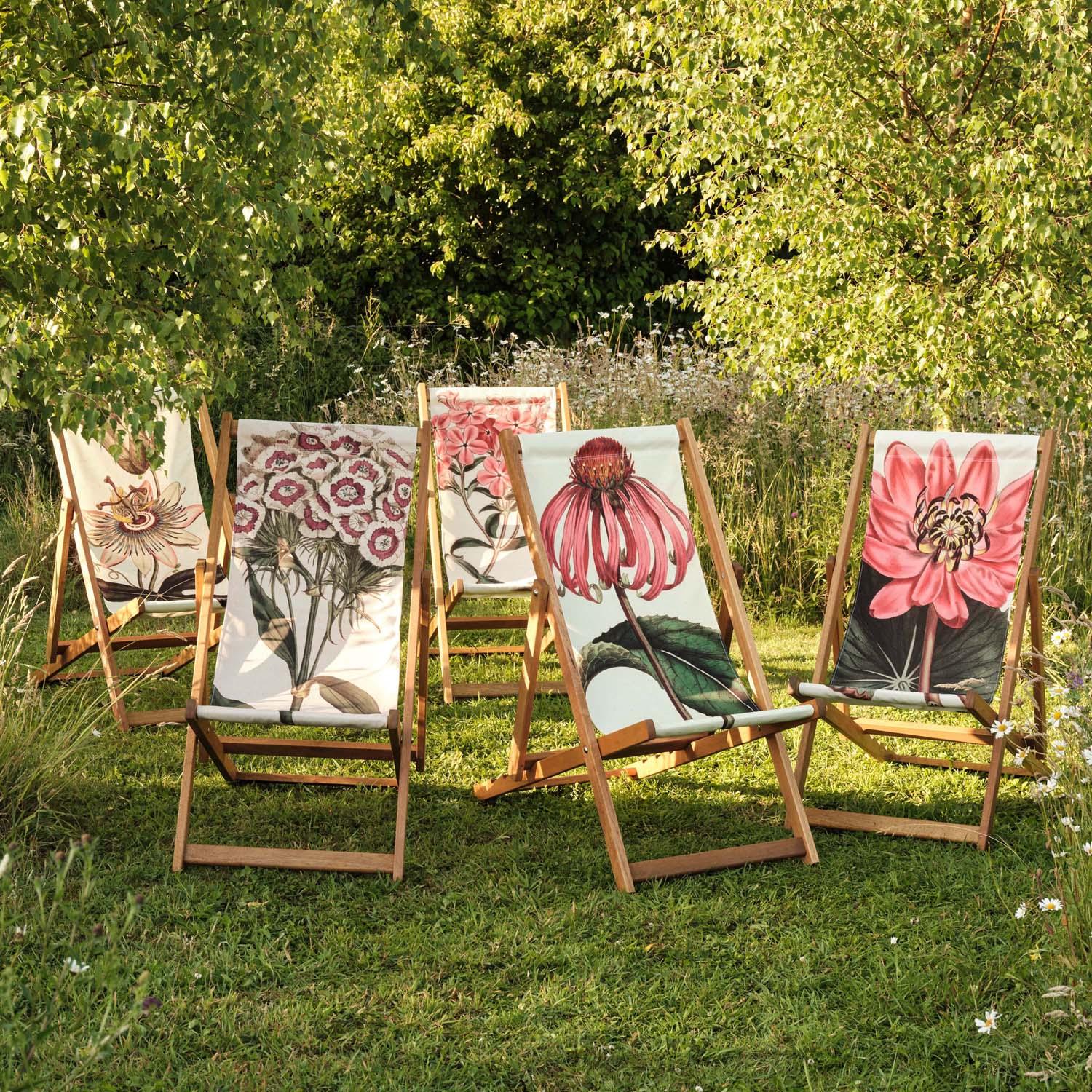 - The deckchair slings are made from very hard wearing canvas polyester sail cloth, and printed using state-of-the-art technology. Hard wearing and durable in all weather conditions.