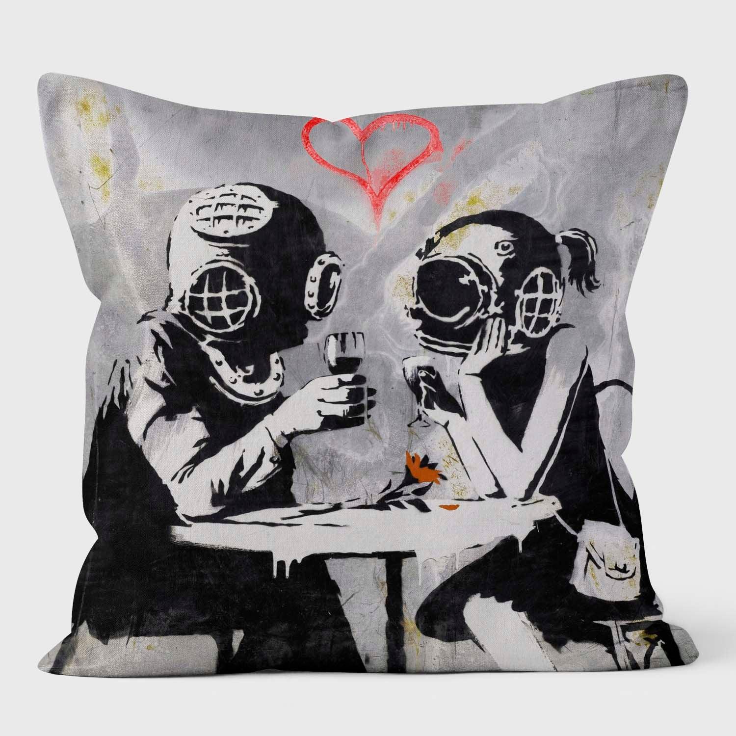 Diver Lovers depicts to sea crossed lovers, sat romatically round a table as they stare into each others helmets.